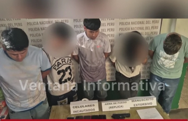 Personal policial del Depincri Este intervino a 5 sujetos, entre ellos dos adolescente, quienes están acusados de participar en una extorsión, en el distrito El Porvenir,...