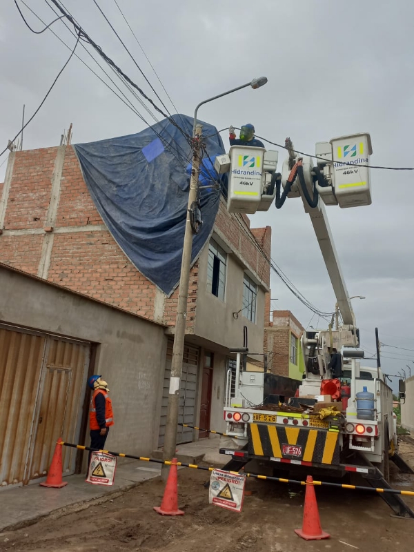 Tras la activación de su Plan de Contingencia, Hidrandina anunció la puesta en marcha de un total de 33 cuadrillas de atención inmediata a disposición de la población de la provincia de Trujillo, conformada por un equipo de profesionales y técnicos en electricidad, quienes vienen cumpliendo la misión de restablecer el servicio de luz en los diferentes sectores afectados por las intensas lluvias de los últimos días.